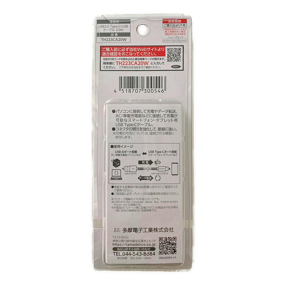 Type-C ロングライフケーブル 2m ホワイト TH223CA20W