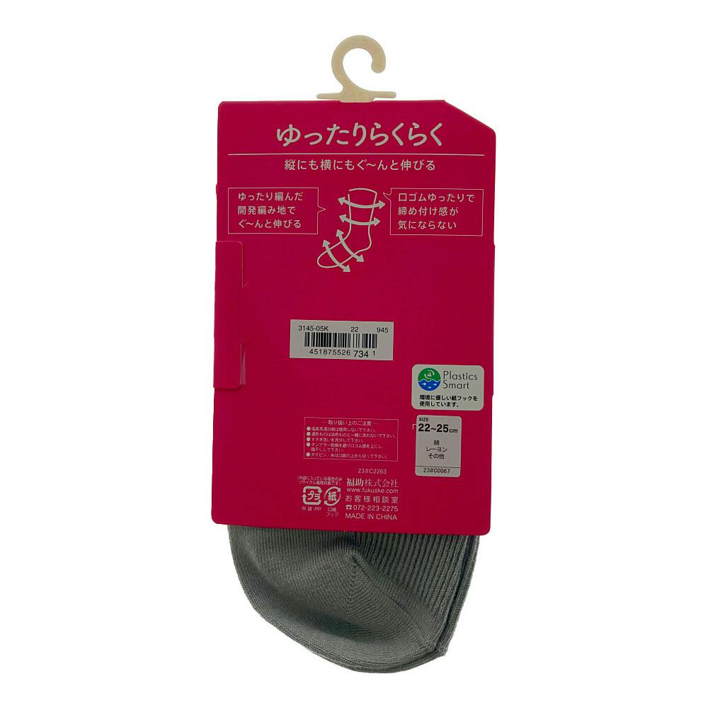 婦人靴下 満足 ゆったりらくらくリブ素材 グレー 22-25cm