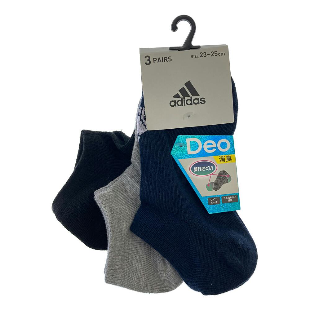 婦人靴下 アディダス 3足組 つま先ロゴ スニーカー丈 23.0-25.0cm モノトーン