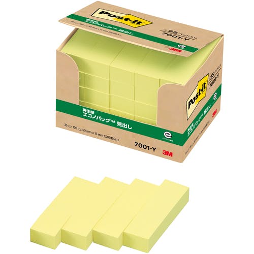 【CAINZ-DASH】スリーエム ジャパン文具・オフィス事業部 ポスト・イット 50X15mm 100枚X25パッド イエロー 7001-Y【別送品】