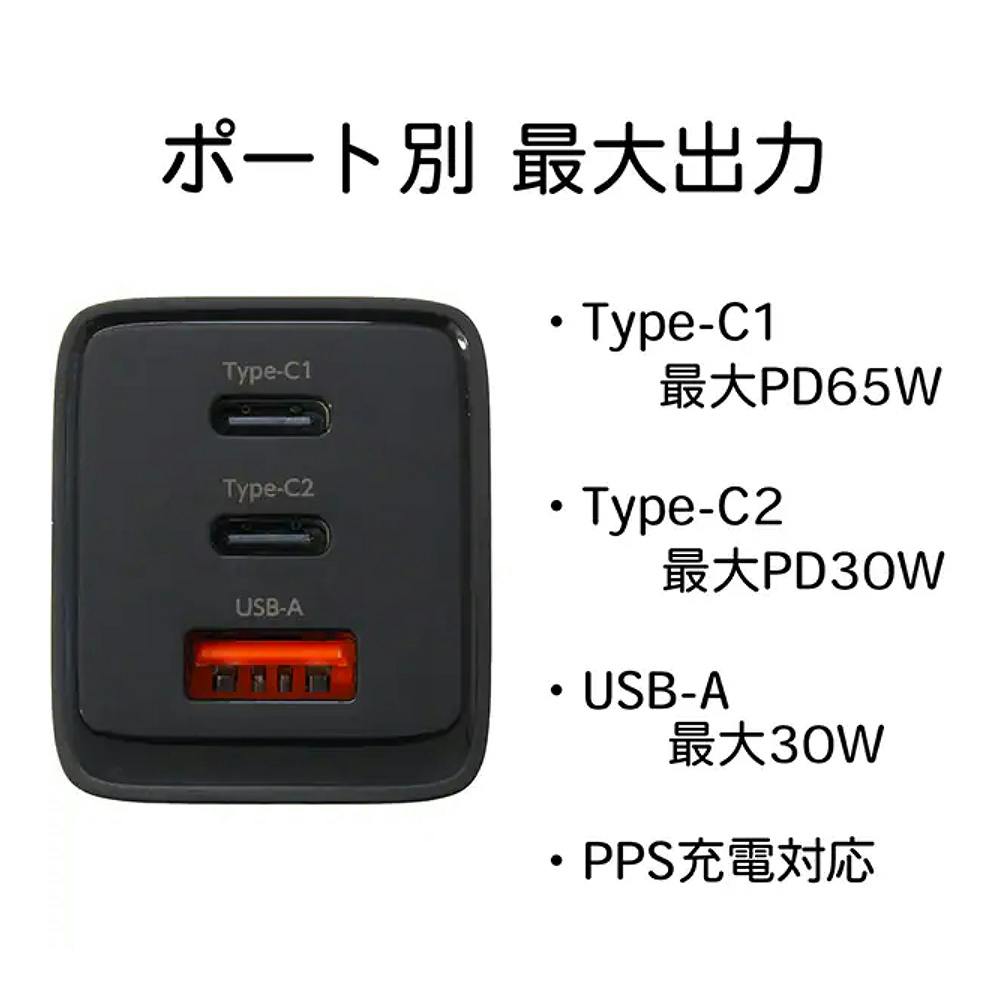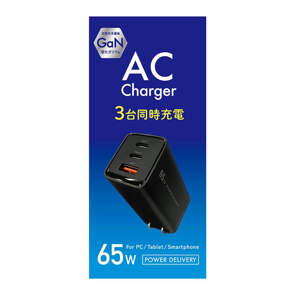 PD対応AC充電器 65W(C×2&A) ブラック ACUC2-65ADBK