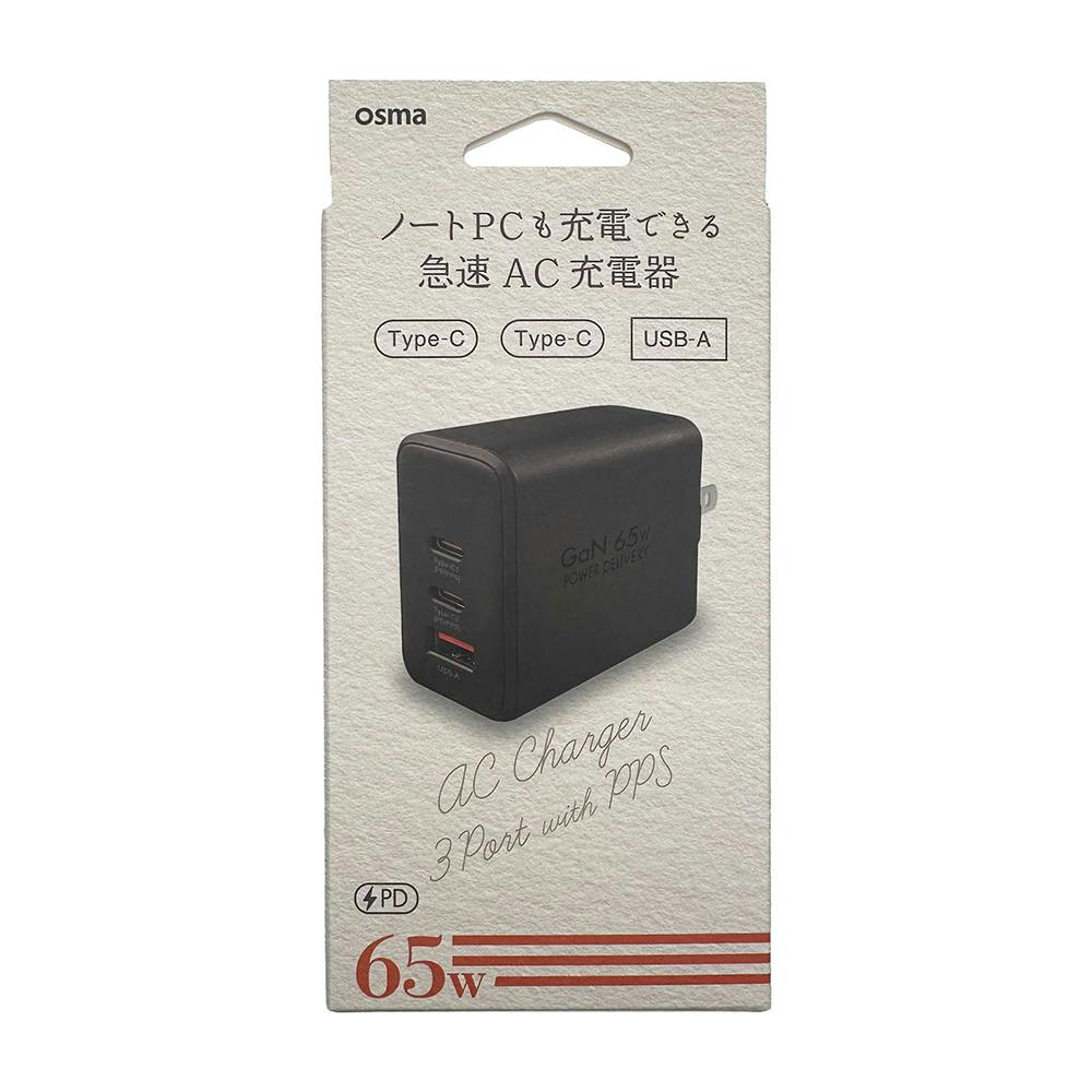 PD対応AC充電器 65W(C×2&A) ブラック