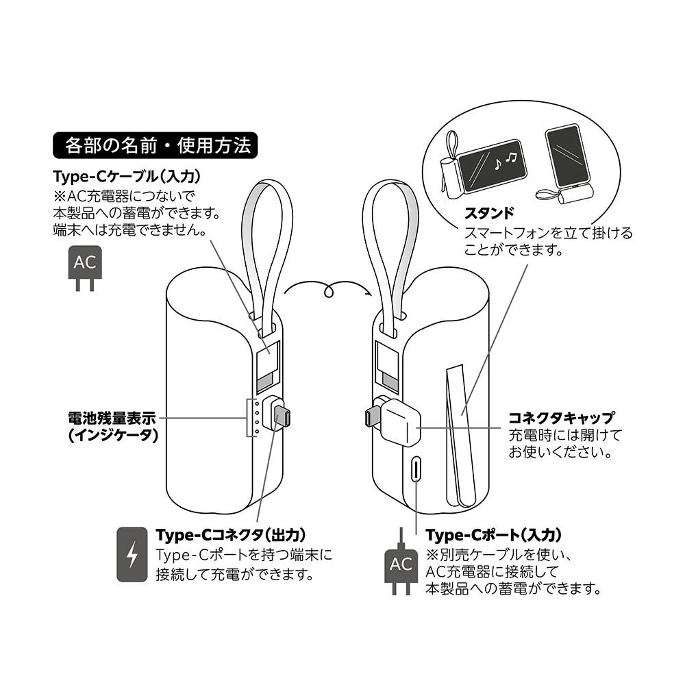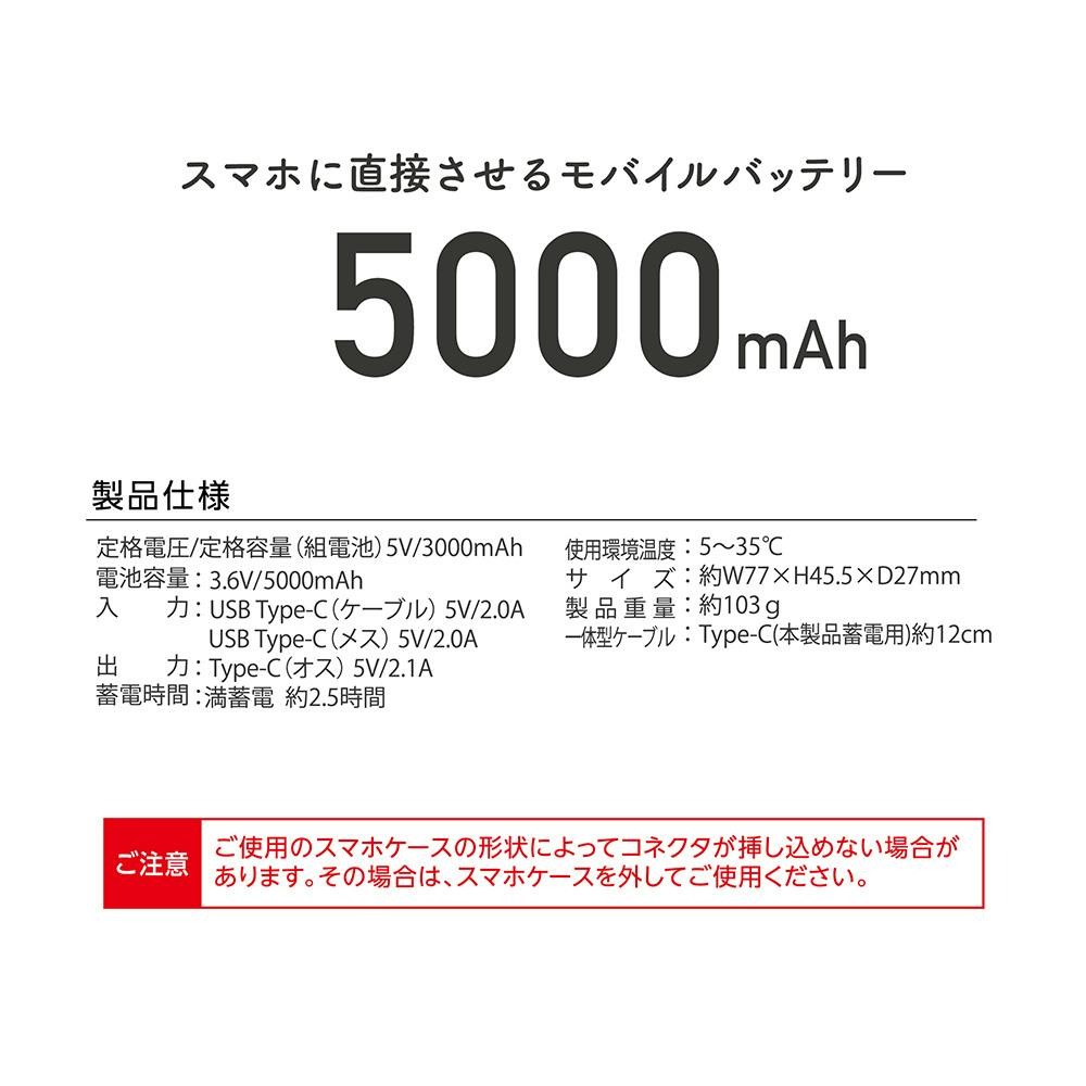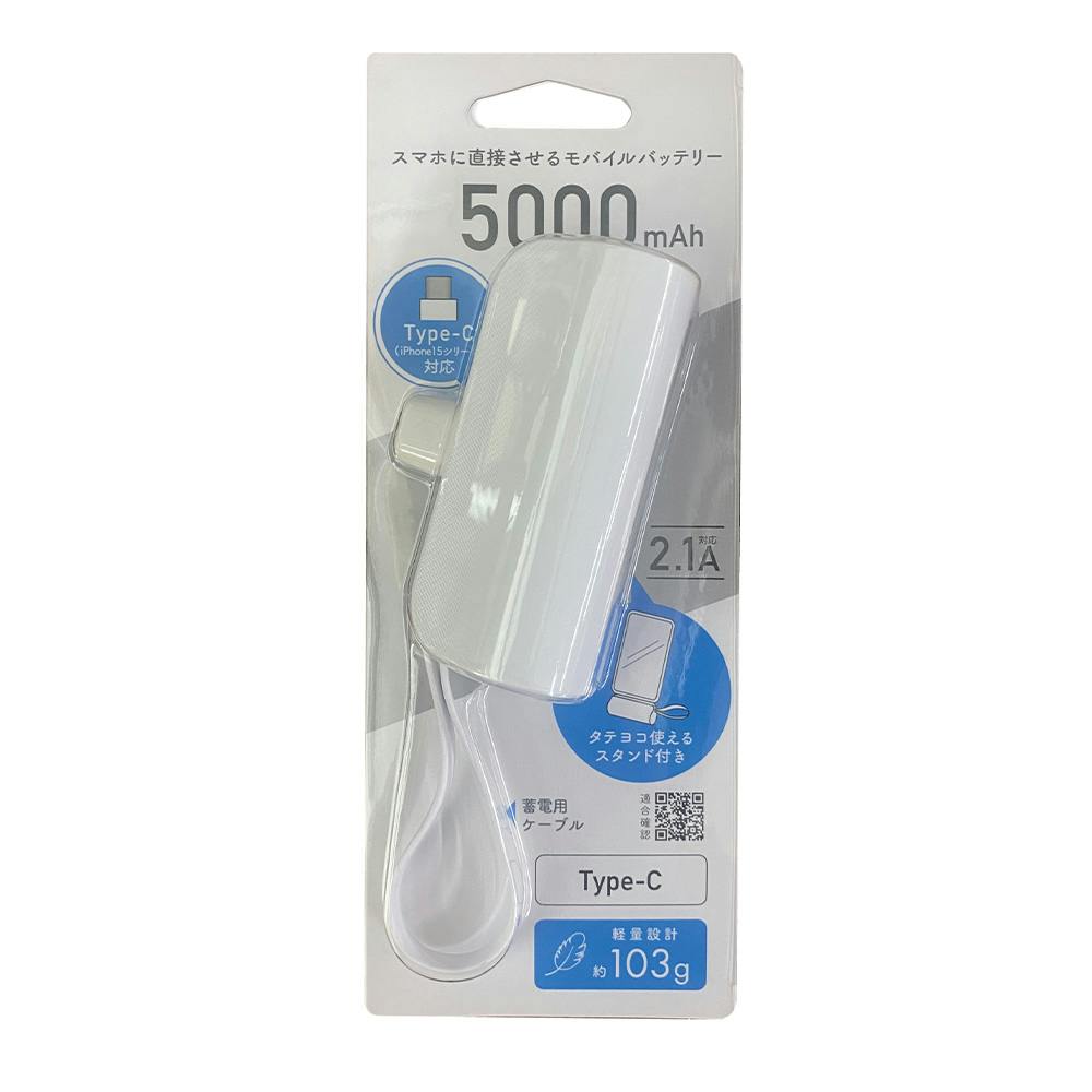スマホに直接挿せるモバイルバッテリー 5000mAh Type-Cモデル LCCR50-WH