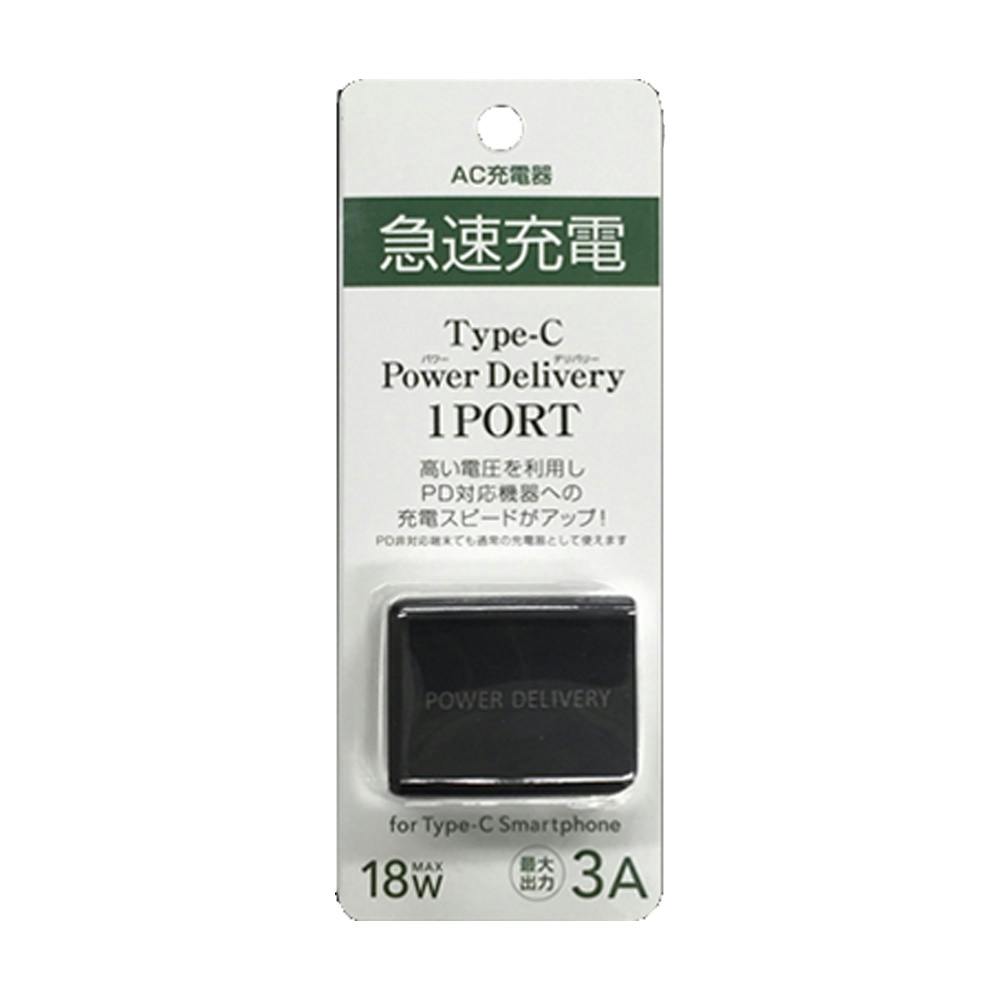 Type-C パワーデリバリー対応AC充電器 最大18W出力 1ポート ブラック