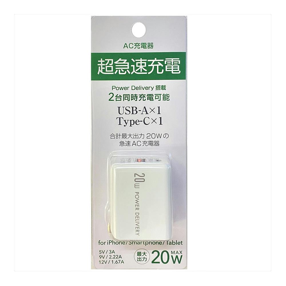 超急速充電 PD20W対応AC充電器 2台同時充電 ホワイト CAZ-ACUC20ADWH