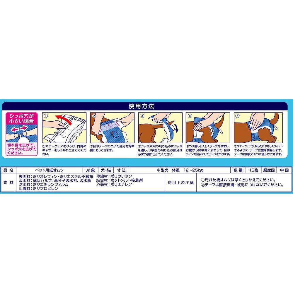 マナーウェア 長時間快適オムツ 男女共用 中型犬用 16枚入