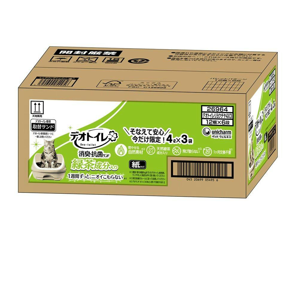 デオトイレ 緑茶成分入り 消臭・抗菌サンド 紙タイプ 4L×3袋入
