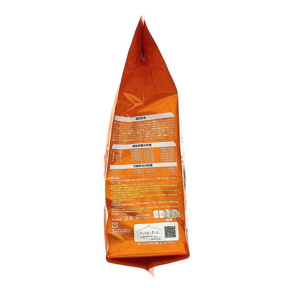 ●粒がお腹で素早く崩れて消化するので、食事の吐き戻しを軽減! ●栄養しっかり健康トータルサポート ●15歳以上の腎臓の健康維持用 ●ビタミンB群を強化(室内猫用比約285%) ●オリゴ糖配合 ●挽き小魚とささみフリーズドライパウダー入り ●着色料・香料不使用