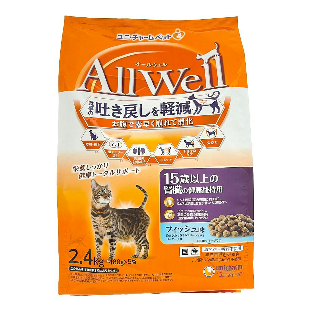 AllWell 食事の吐き戻しを軽減 15歳以上 腎臓の健康維持用 フィッシュ味 2.4kg