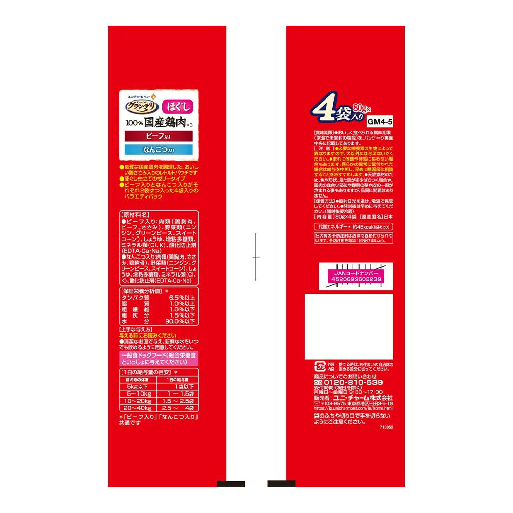 グラン・デリ パウチ 国産ささみほぐし ビーフ・なんこつ入り 80g×4個
