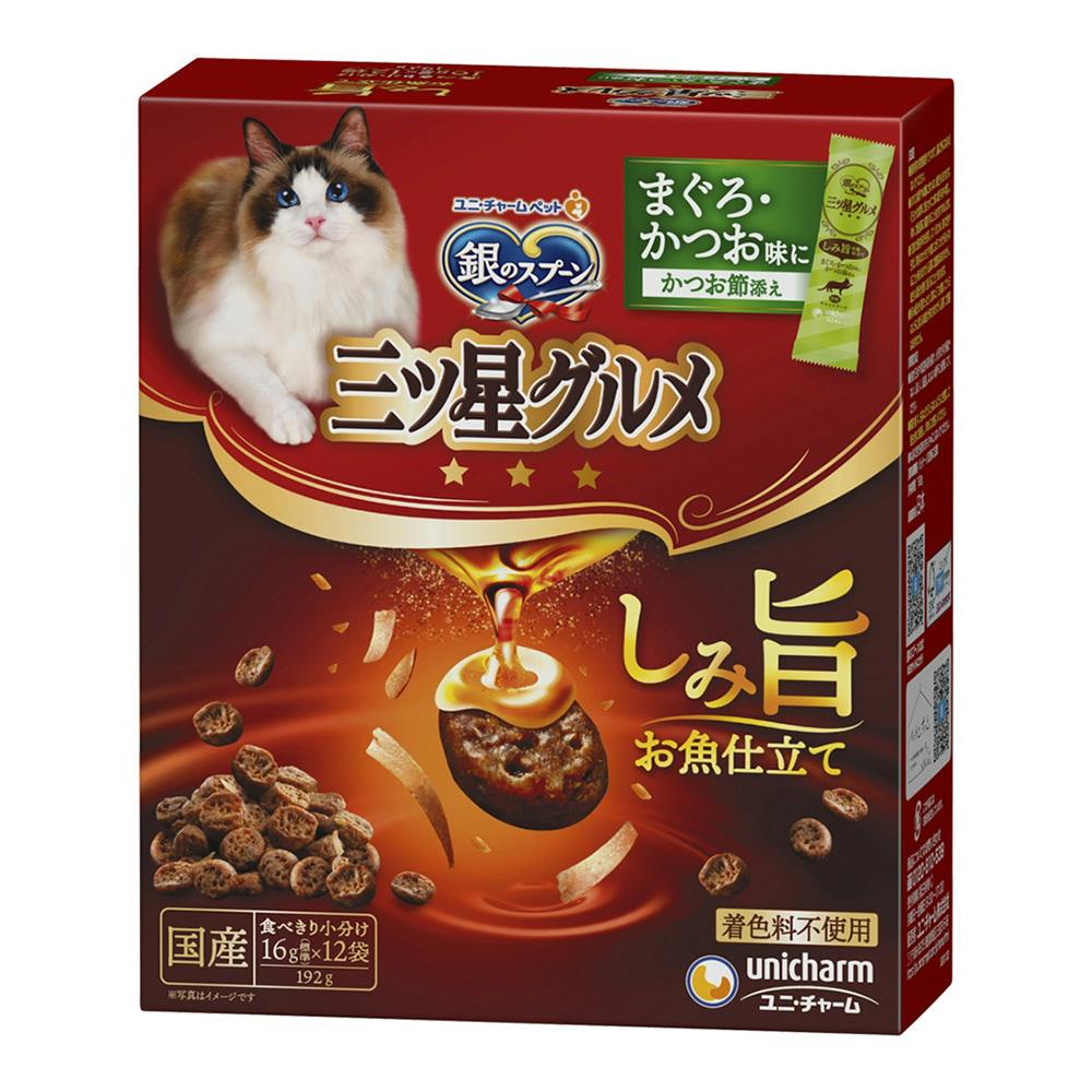 ユニ・チャーム 銀のスプーン 三ツ星グルメ しみ旨お魚仕立て まぐろ・かつお味にかつお節添え 16g×12袋