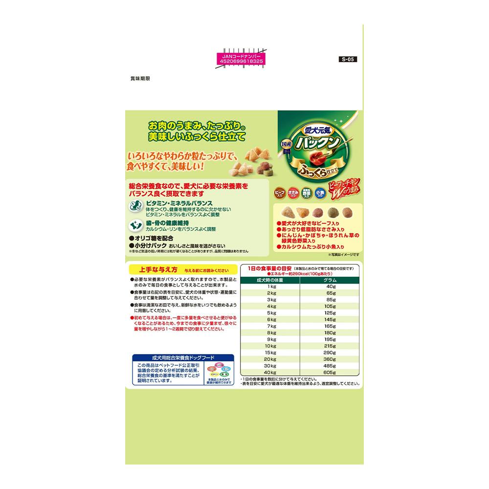 愛犬元気 パックン ビーフ・ささみ・野菜・小魚 2.5kg