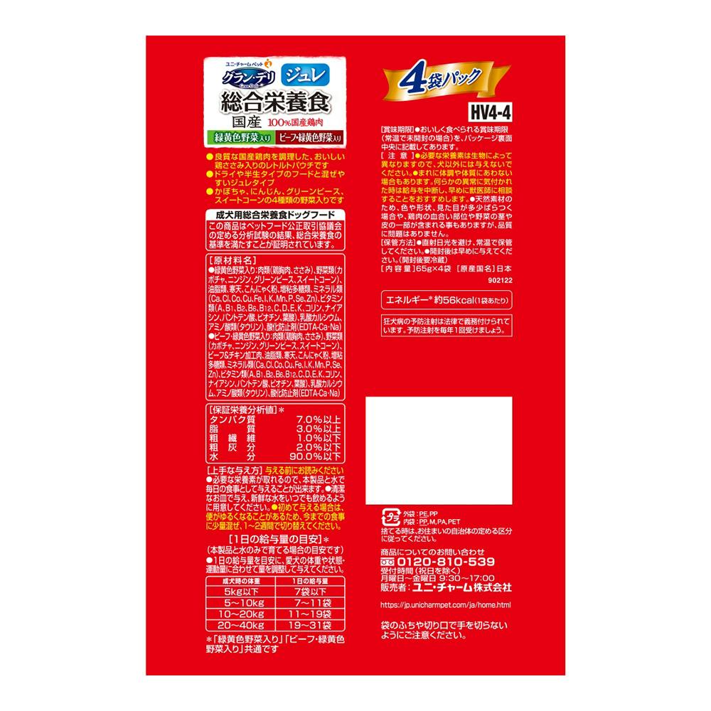 • グラン・デリ 総合栄養食 パウチ ジュレ 成犬 野菜・ビーフ 65gg×4袋パック