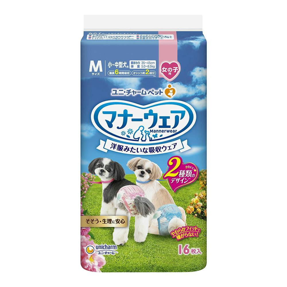 ユニ・チャーム マナーウェア 女の子用 Mサイズ ピンクリボン・青リボン 小~中型犬用 16枚