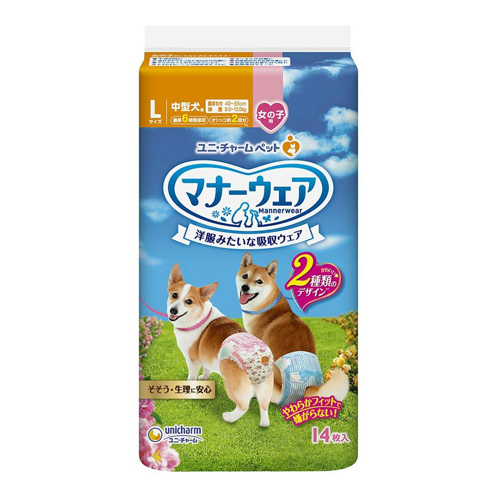 ユニ・チャーム マナーウェア 女の子用 Lサイズ ピンクリボン・青リボン 中型犬用 14枚