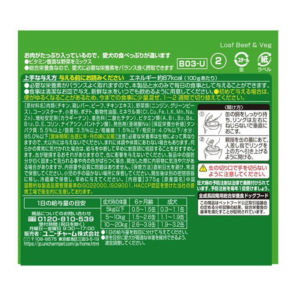 愛犬元気 缶 ビーフ・野菜入り 375g