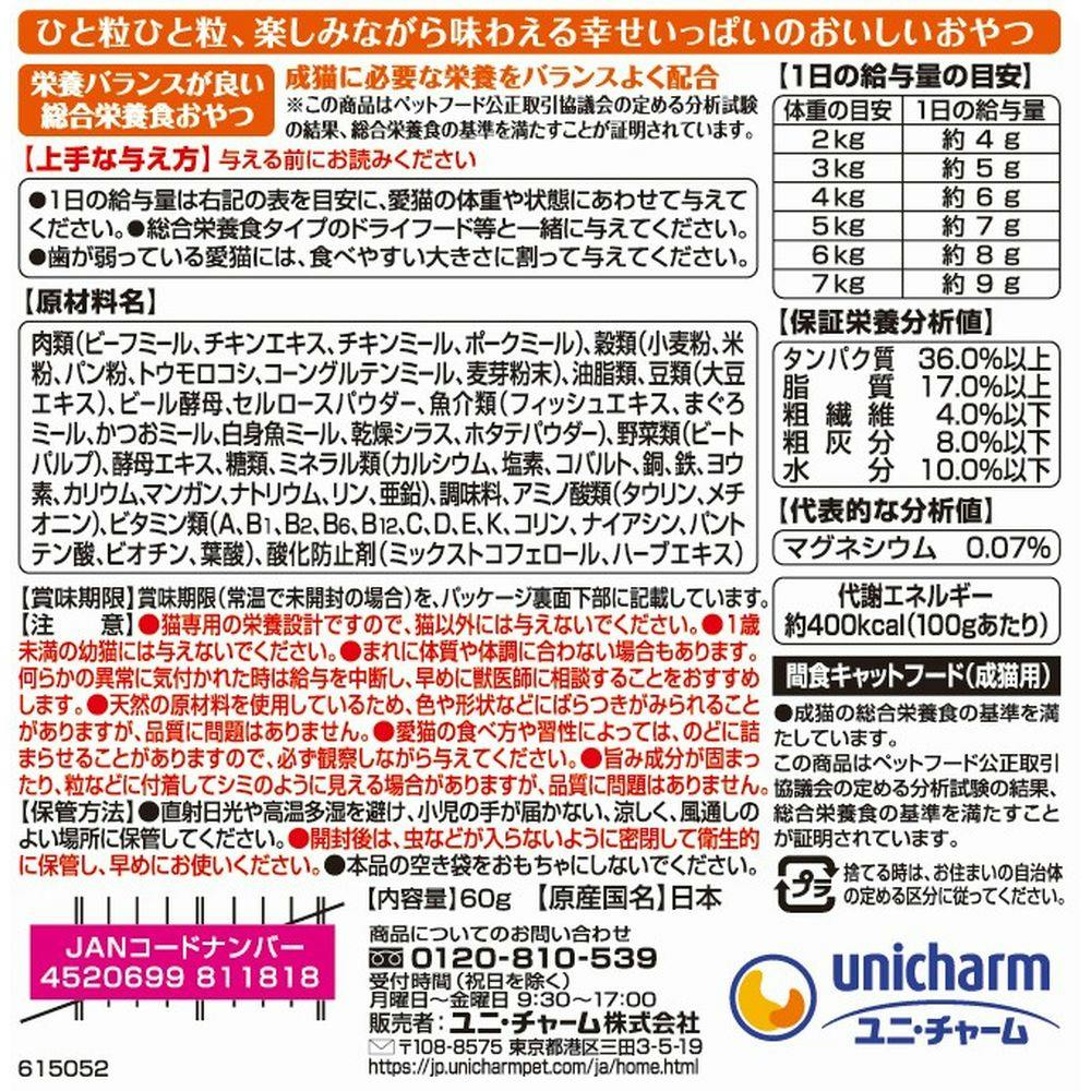 与える前にお読みください●1日の給与量は右記の表を目安に、愛猫の体重や状態にあわせて与えてください。●総合栄養食タイプのドライフード等と一緒に与えてください。●歯が弱っている愛猫には、食べやすい大きさに割って与えてください。
