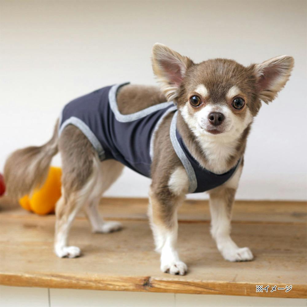 頭から被せて前足を入れた後、後ろ足を通して腰の上でマジックテープをとめる
