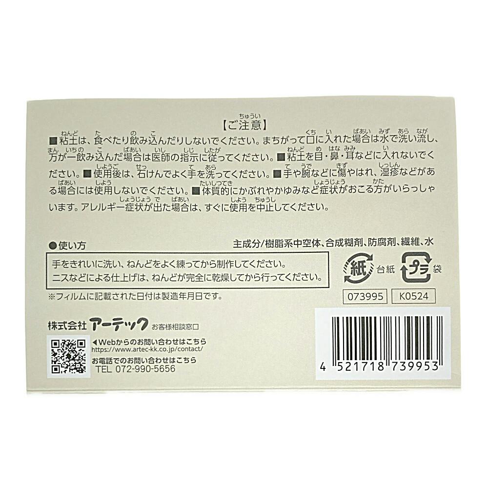 しっとりとなめらかな質感で、よく伸びる粘土です。きめが細かくひび割れがしづらいので繊細な造形が可能です。手につきづらく粘土同士がまとまりやすいのでお部屋が汚れません。