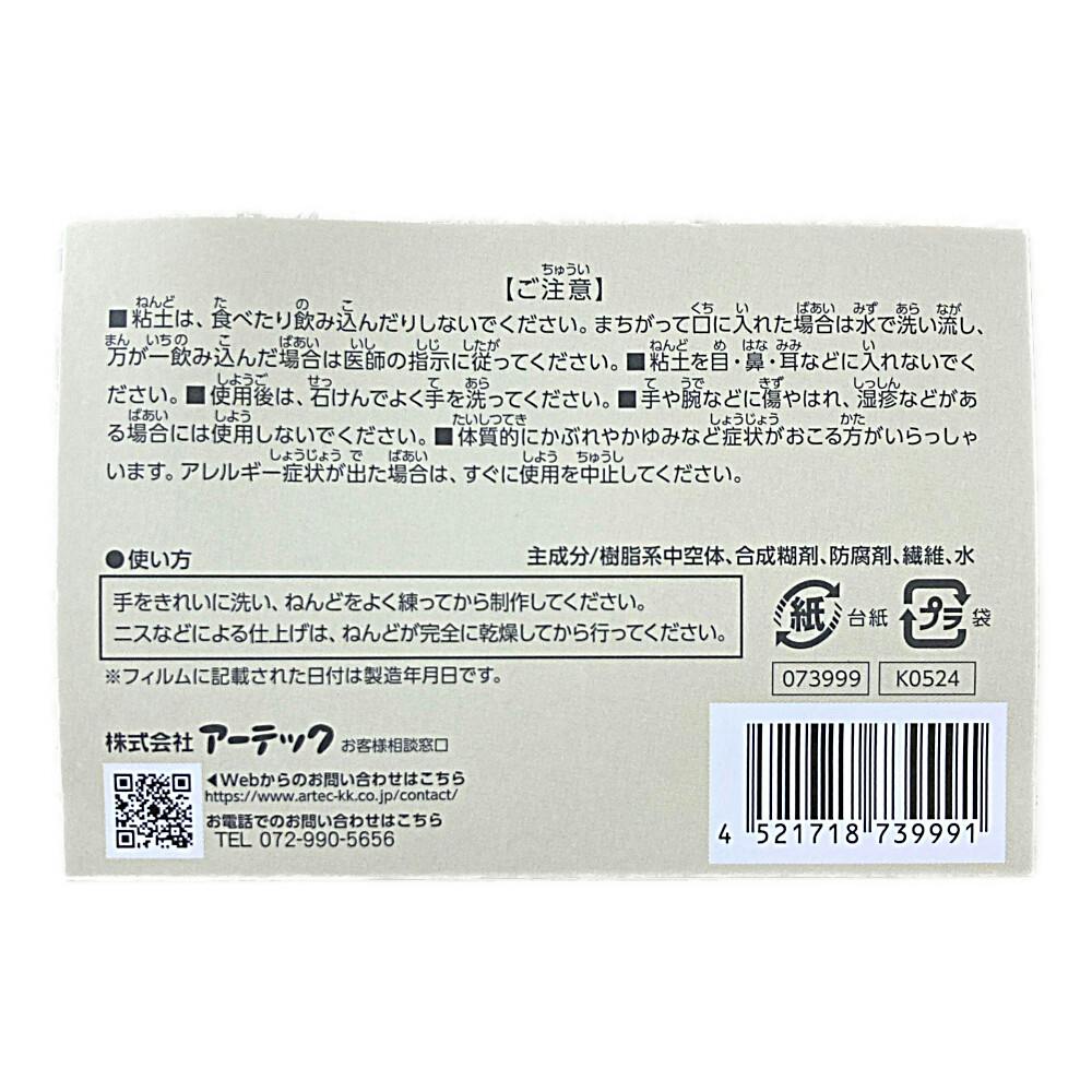 しっとりとなめらかな質感で、よく伸びる粘土です。きめが細かくひび割れがしづらいので繊細な造形が可能です。手につきづらく粘土同士がまとまりやすいのでお部屋が汚れません。