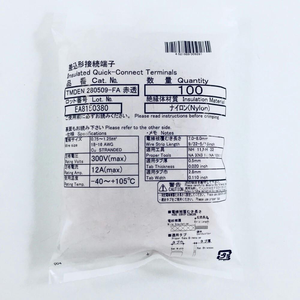 ニチフ 差込形接続端子 TMDEN 280509-FA-RCL 100個入