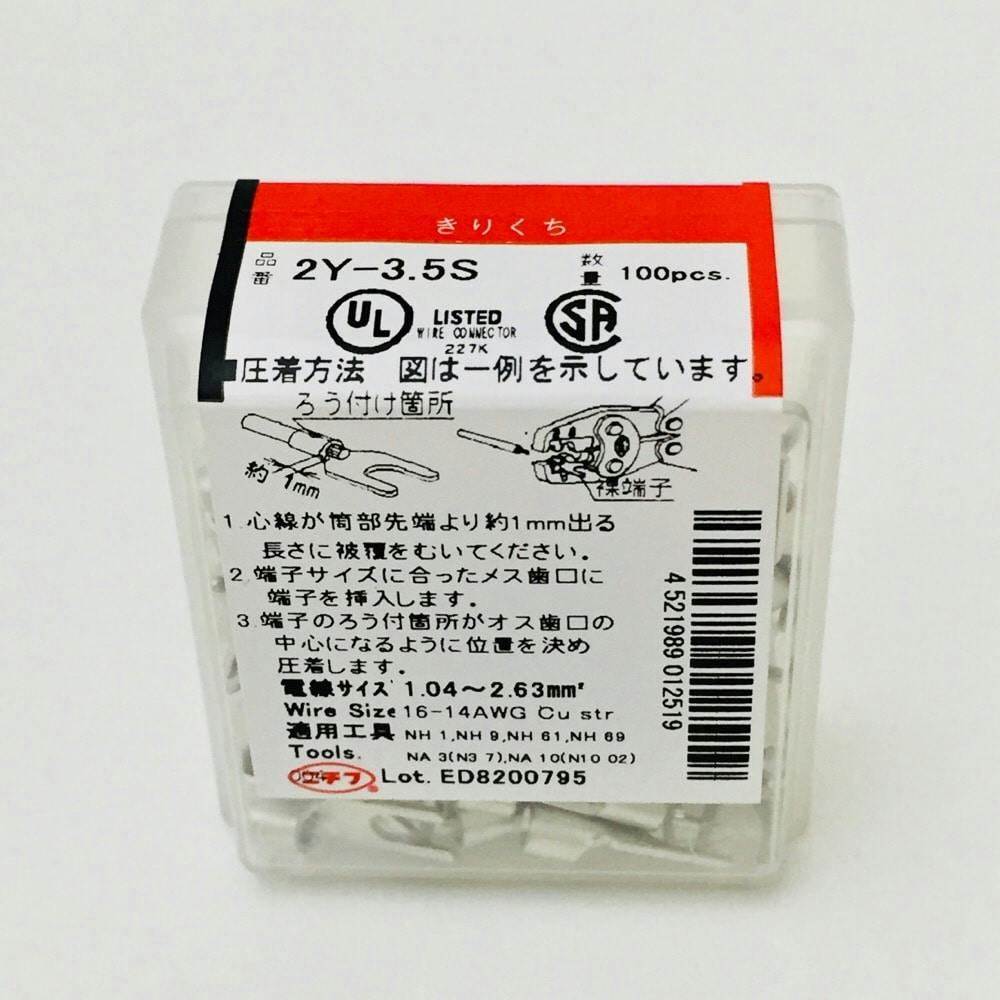 ニチフ 裸圧着Y型端子 2Y-3.5S 100個入