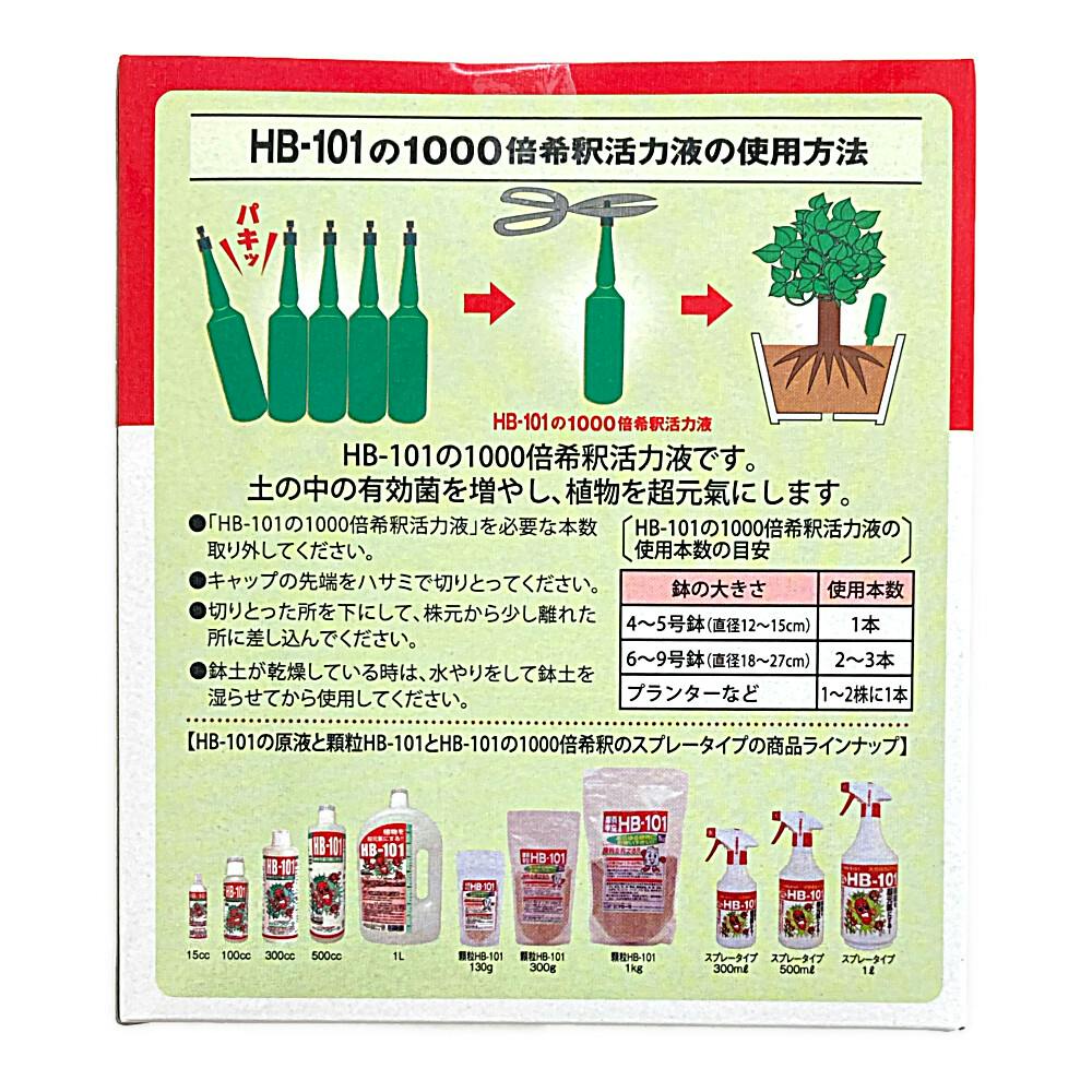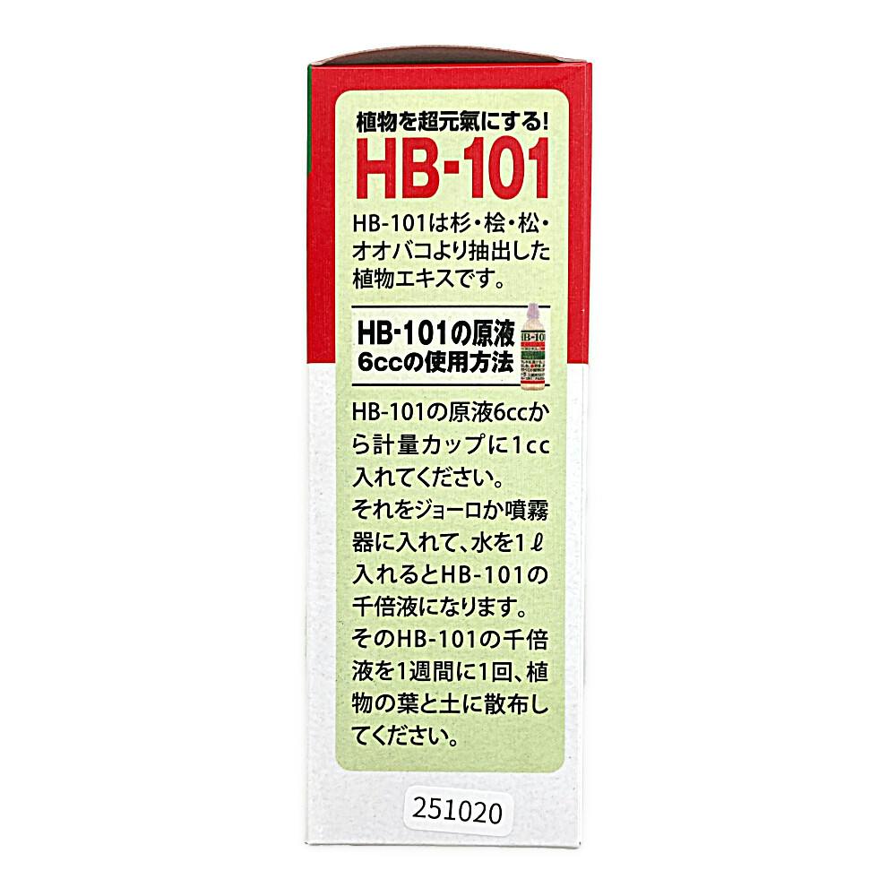 ●観葉植物、鉢花、草花等あらゆる植物に ●植物を元気にする!HB-101は杉・桧・松・オオバコより抽出した植物エキスです ●そのまま使える1000倍希釈活力液 ●全植物用 ●HB-101の原液6㏄と計量カップ付き など
