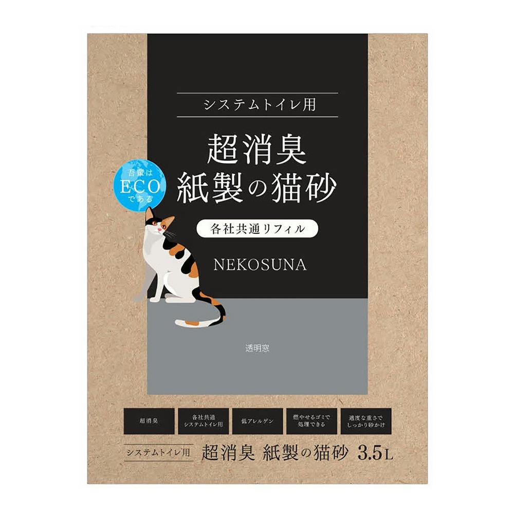 ●各社共通システムトイレ用紙製猫砂です。●超消臭、低アレルゲン、フッ素不使用、燃やせるごみで処理できます。●再生パルプで環境にも優しい紙製猫砂です。●無香料