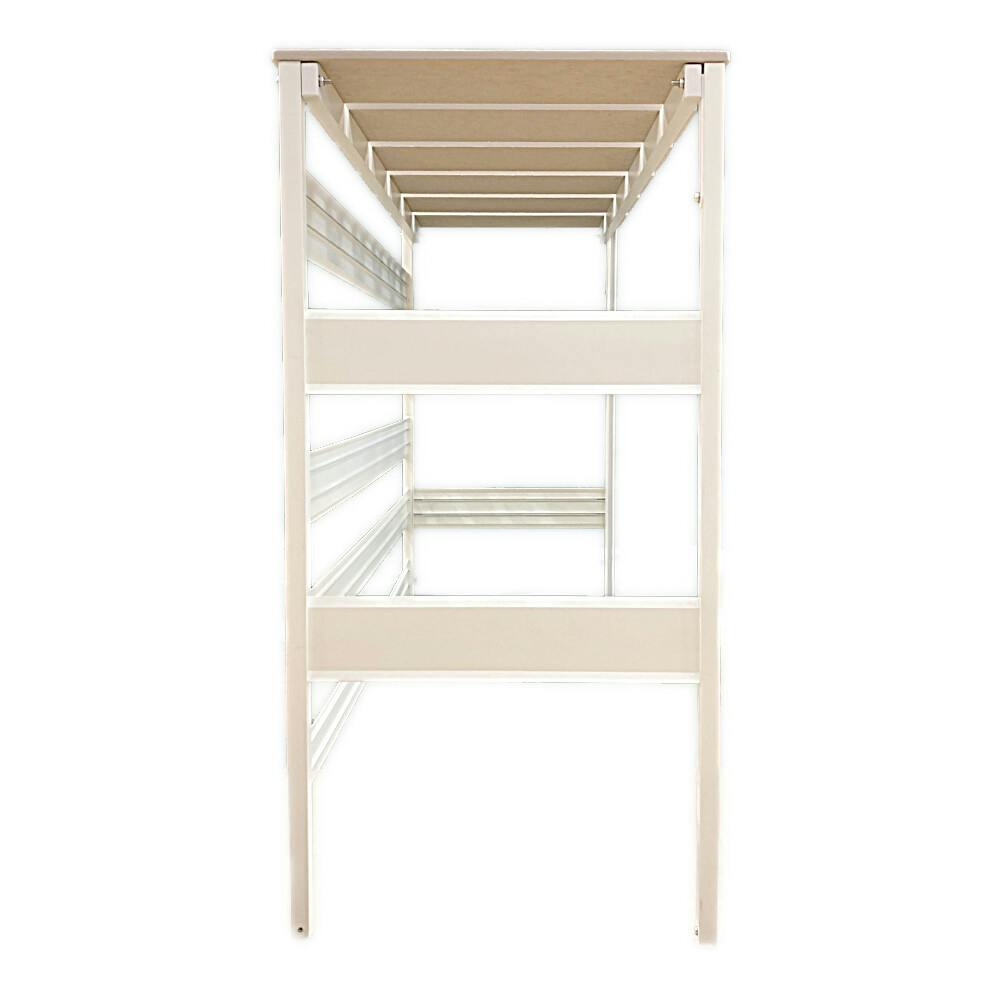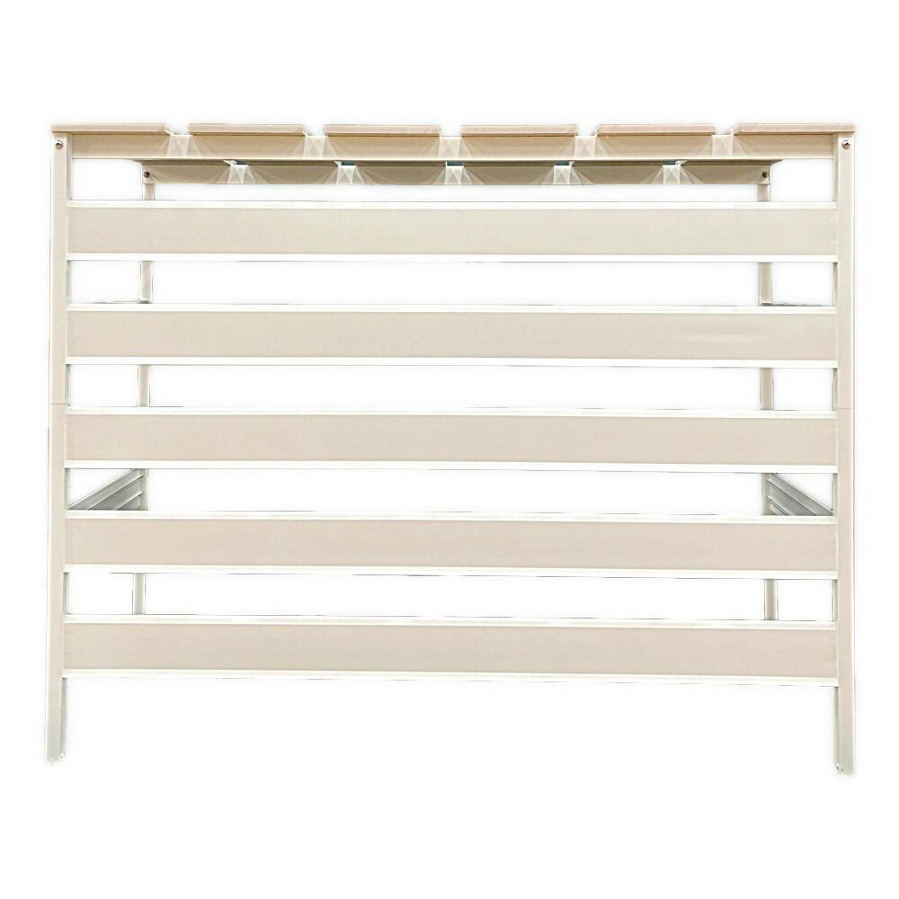 天板が人工木で丈夫(単層)、側面のルーバーはアルミ製、分割型