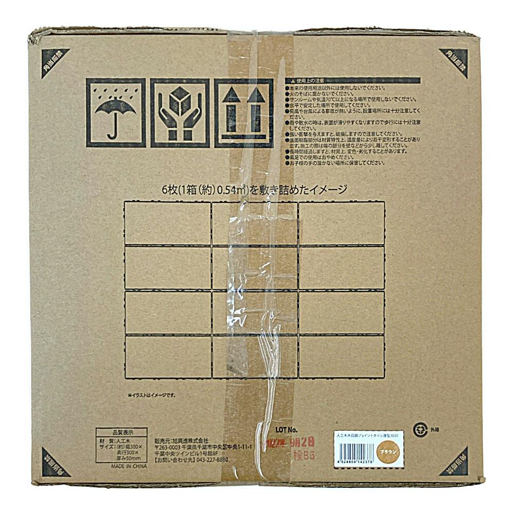 人工木木目調ジョイントタイル 厚型 30×30 ブラウン 6枚入