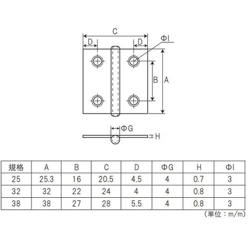 【CAINZ-DASH】フジテック・ジャパン ステンレス丁番(SUS304) 袋入(2枚)・薄口25mm B-11300【別送品】