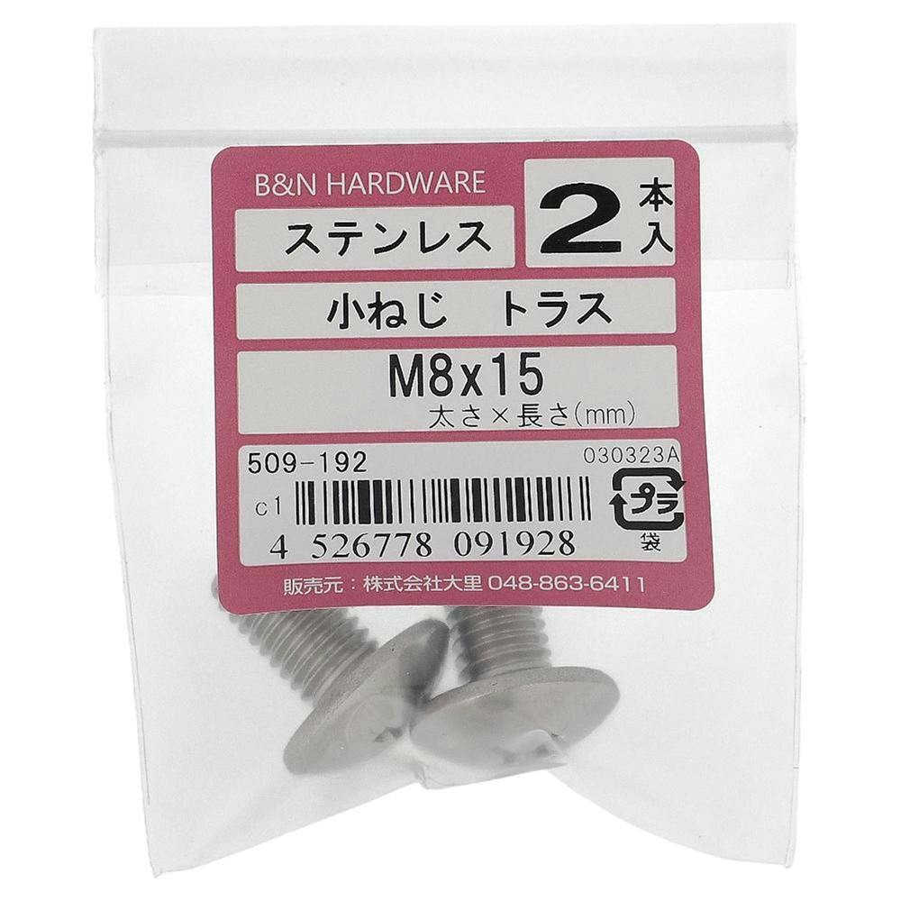 小ねじ トラス ステンレス 509-192 M8×15mm 2本入