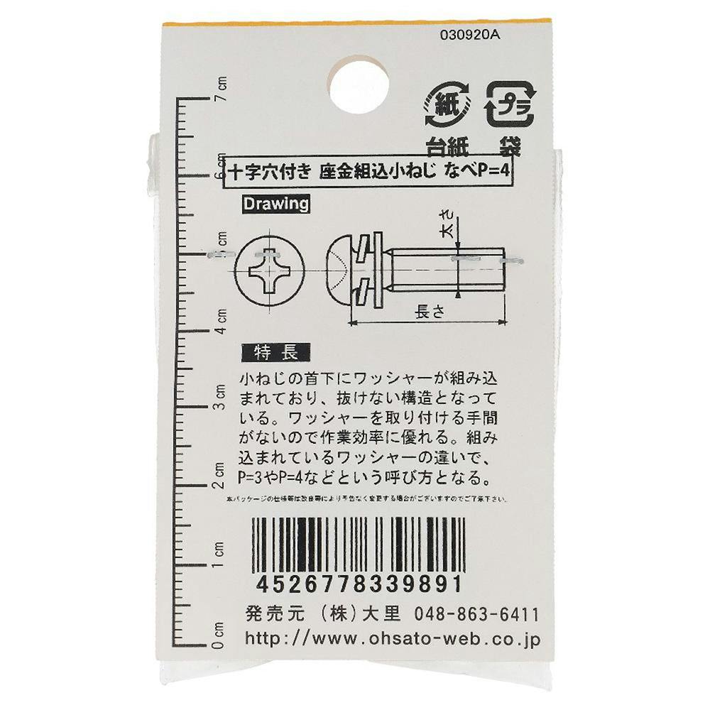 座金組込ねじ ステンレス P=4 533-989 6×10mm 4本入