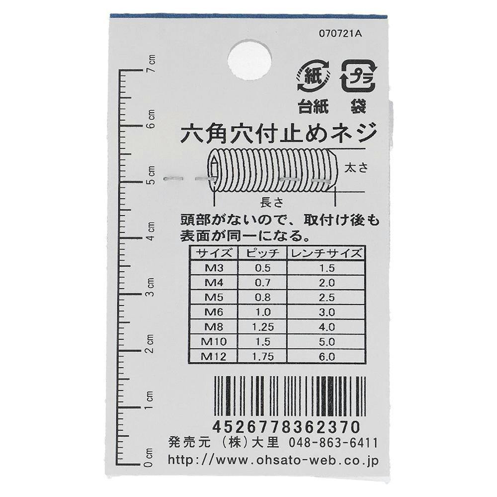 六角穴付止ねじ クボミ ステンレス 536-237 M6×8mm 3本入