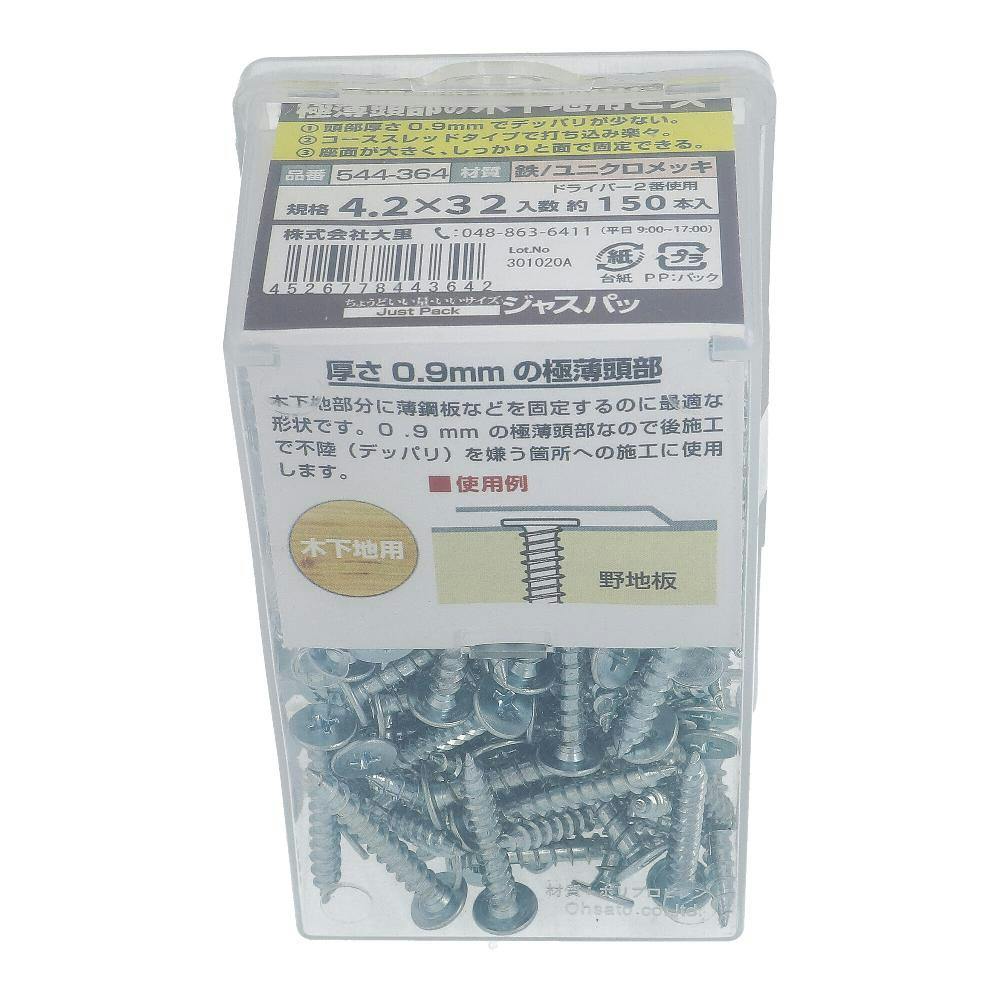 極薄頭部の木下地用ビス ユニクロ 544-364 4.2×32mm 150本