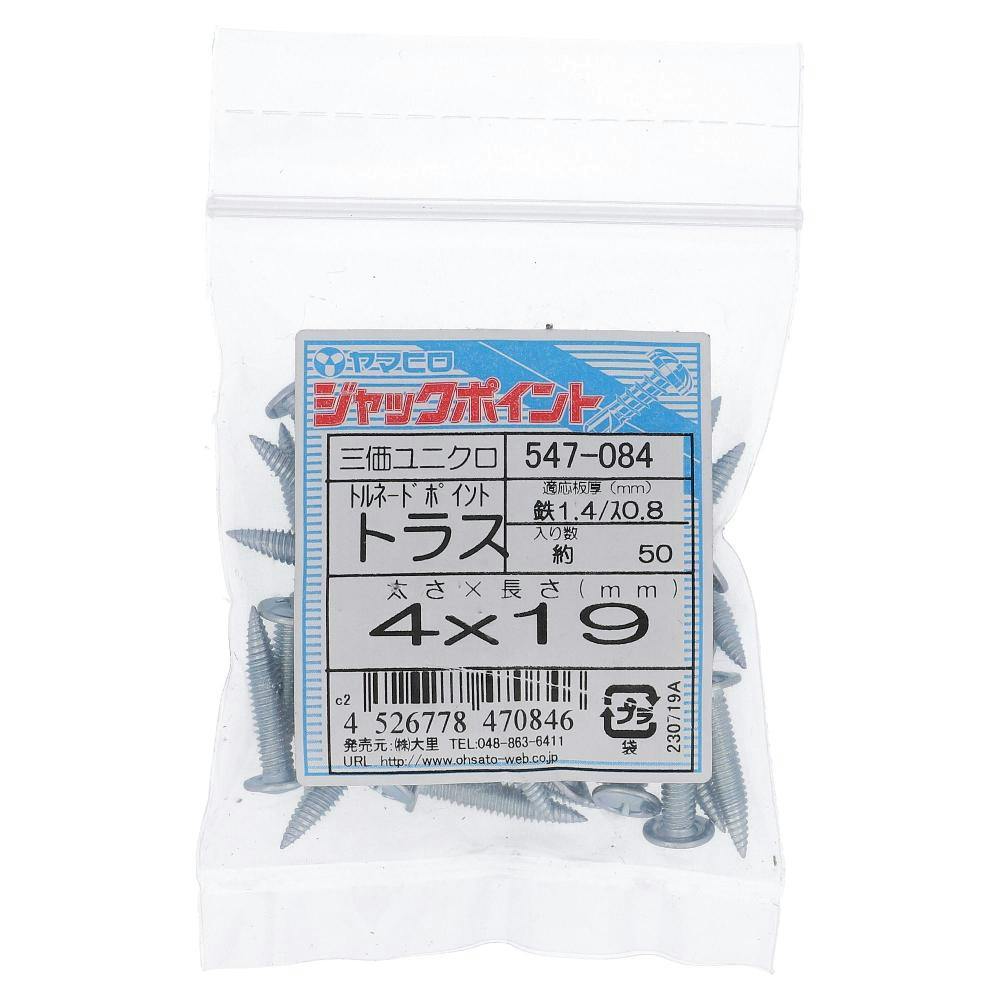ヤマヒロ ジャックポイント トルネードポイント トラス 三価ユニクロ 547-084 4×19mm 50本 袋売