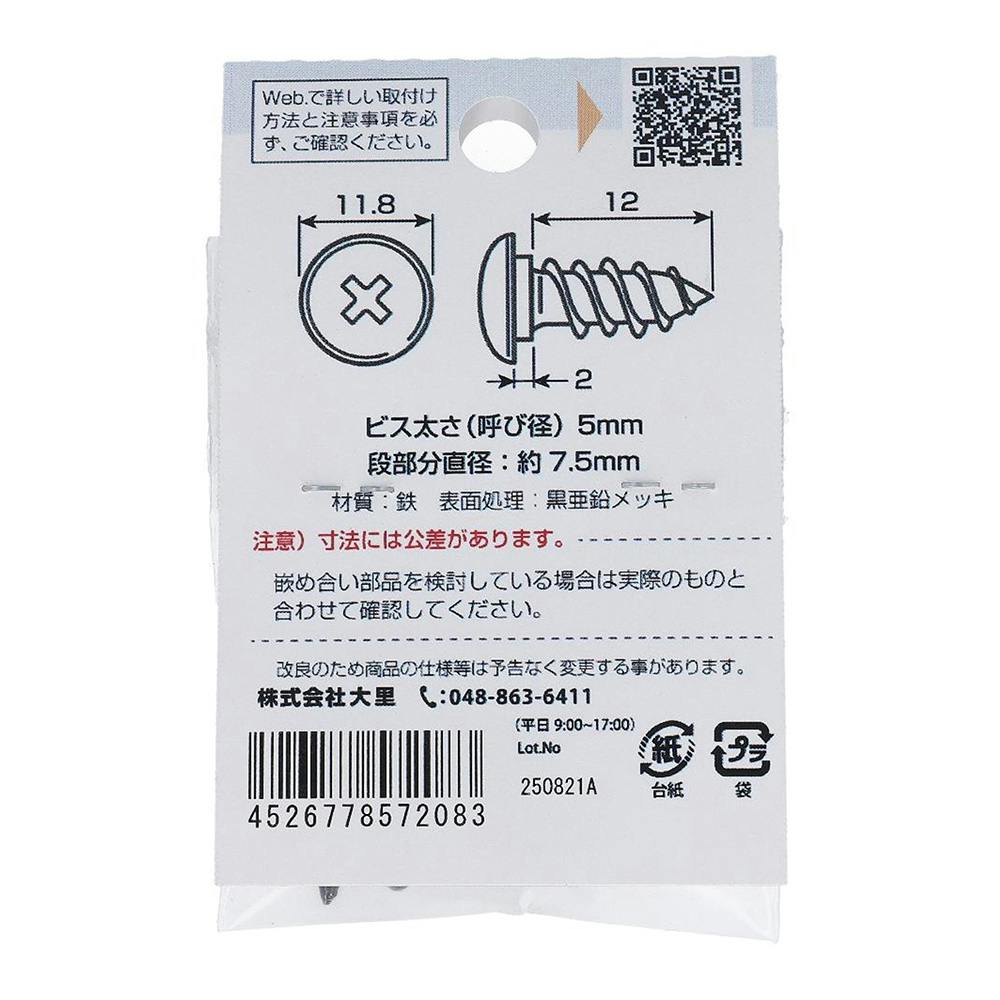 首下に段がある 段付きビス ブラック 557-208 5×14-2mm 4入