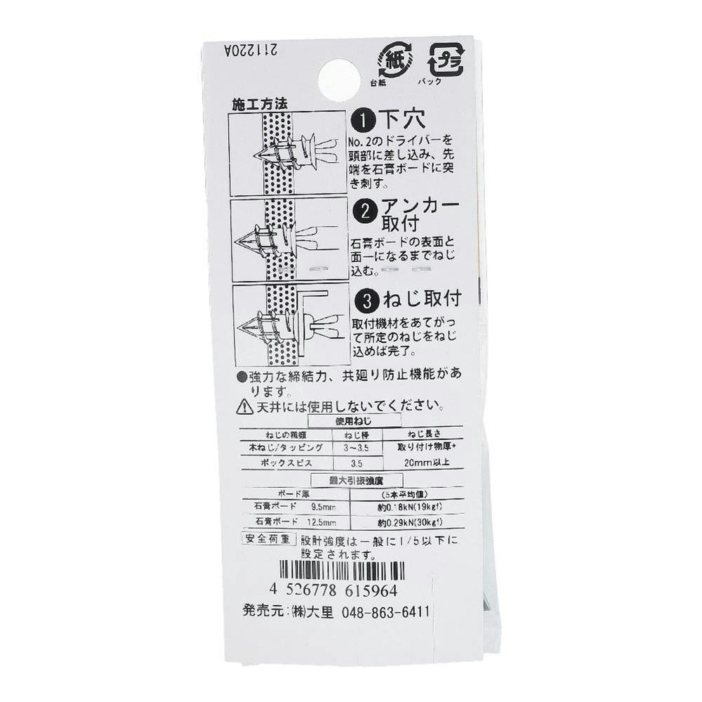カベロック スケルトン ミニ 中空壁 石膏ボード 561-596 5本入