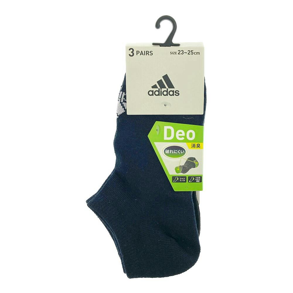 婦人靴下 アディダス 3足組 ロゴ スニーカー丈 23-25cm モノトーン