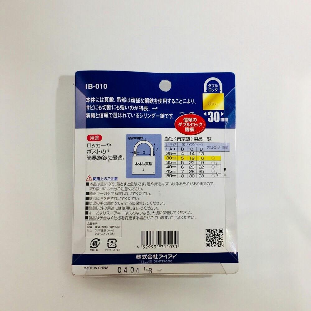 アイアイ 南京錠 同一キー IB-010 30mm 3個付