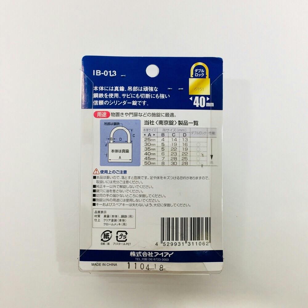 アイアイ 南京錠 同一キー IB-013 40mm 2個付