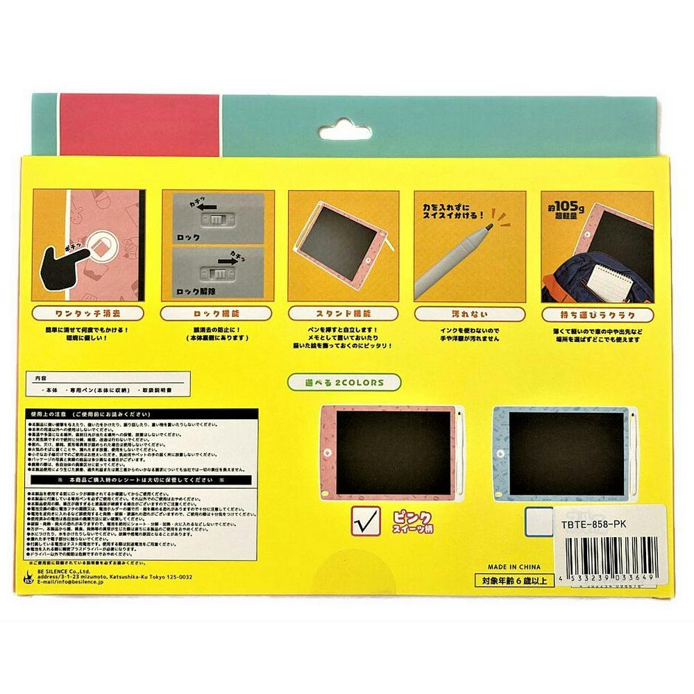 カラフルスクリーンで楽しくおえかき!インクを使わないので手や洋服が汚れません。ワンタッチで簡単に消去できます。ペンを挿すと自立するのでスタンドにもなります。