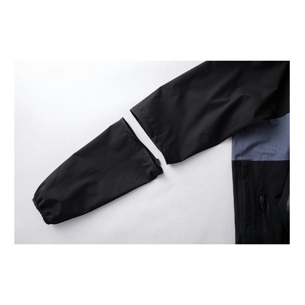●4WAYストレッチ。●耐水圧。●透湿。●防水。●表面撥水。●フルハーネス対応。●袖取り外し可能。●収納袋付き。