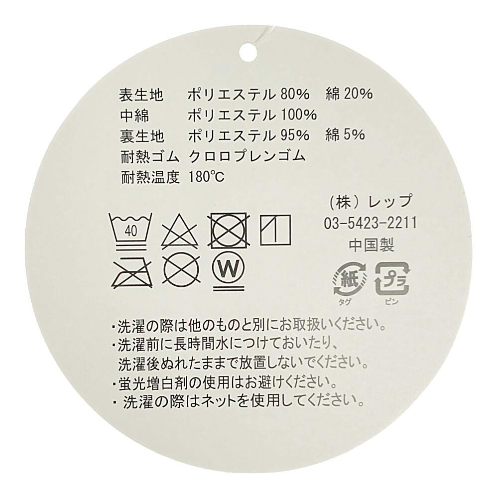 生地:ポリエステル80% 綿20% 中綿:ポリエステル100% 裏生地:ポリエステル95% 綿5% 耐熱ゴム:クロロプレンゴム