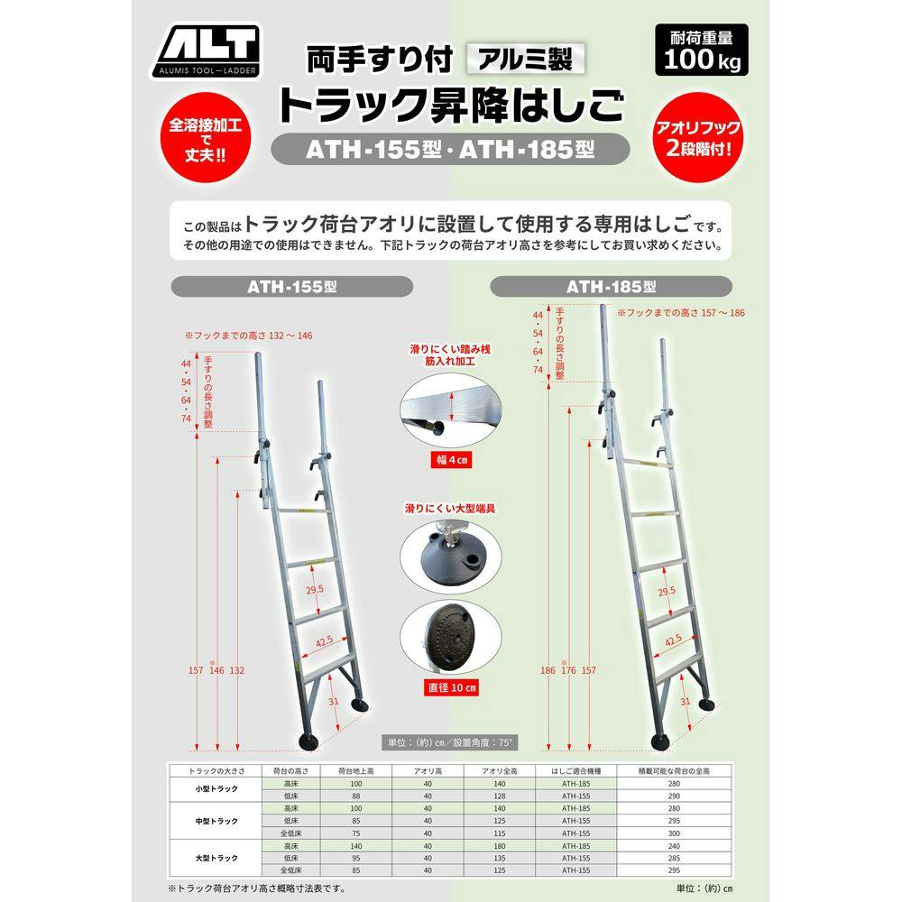 両手すり付きトラック昇降はしご 4段