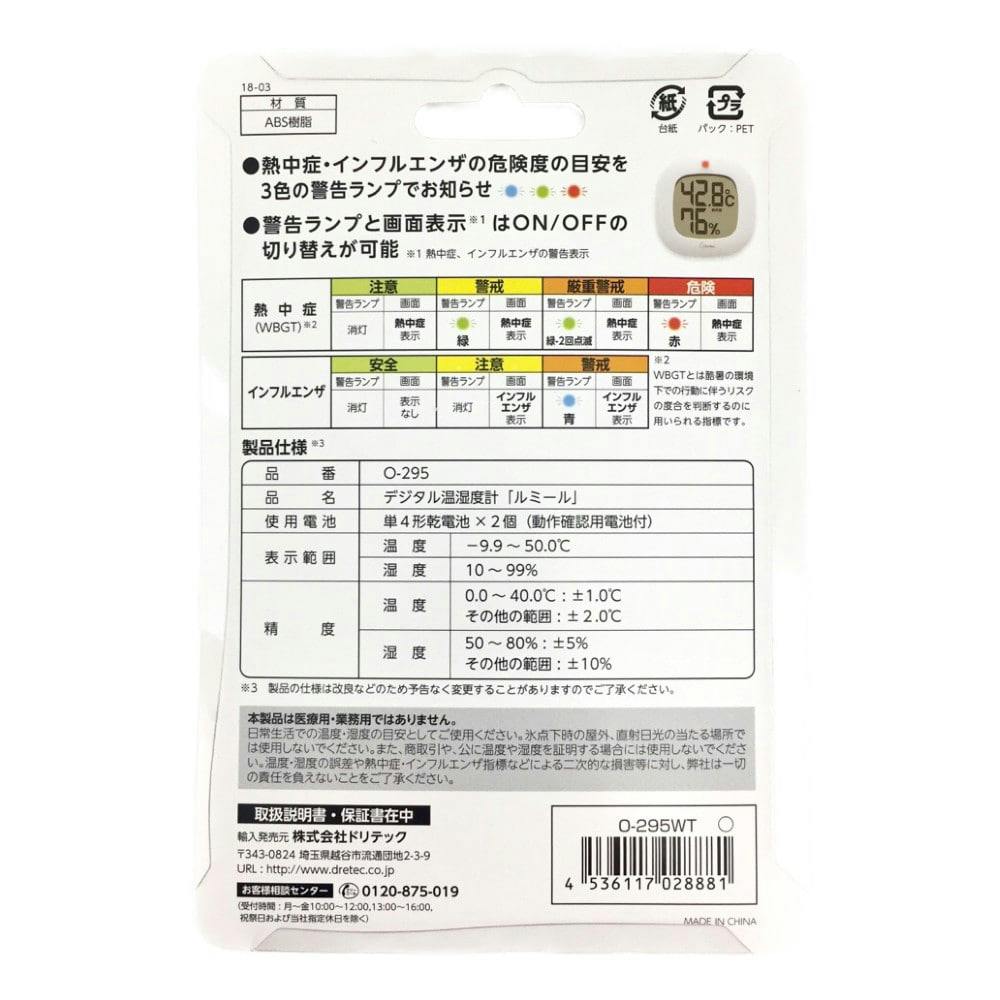 • デジタル温湿度計 O-295 ホワイト(販売終了)