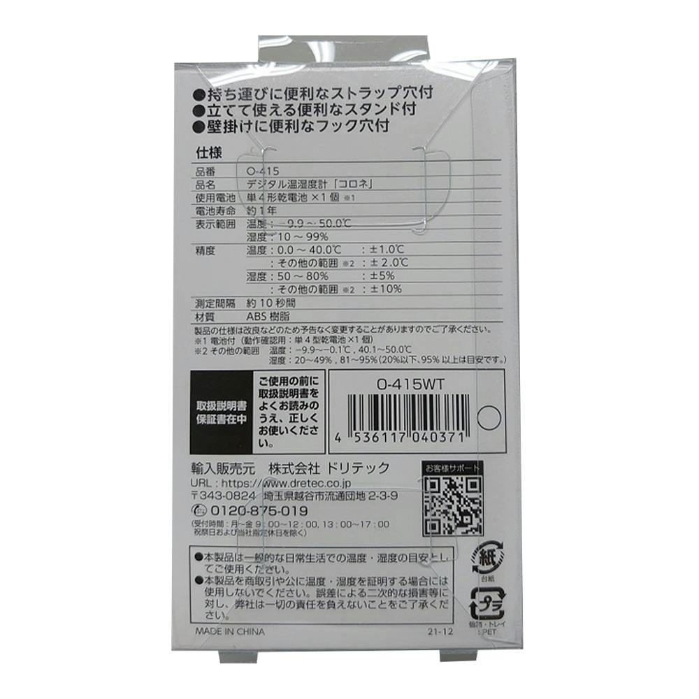 DT デジタル温湿度計 コロネ O-415WH