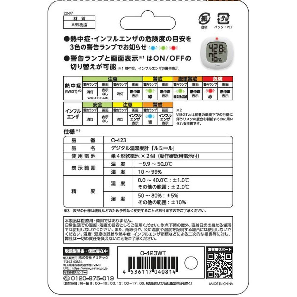 DT デジタル温湿度計 O-423 ホワイト