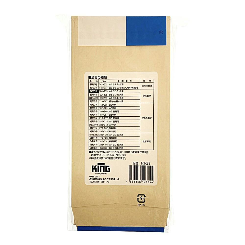 封筒 長形3号 クラフト 100枚