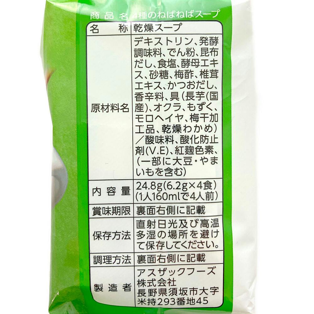 4種のねばねば具材に、昆布出汁が効いた具たっぷりの和風のスープです。長芋、オクラ、もずく、モロヘイヤの素材本来のねばねば食感に、ほんのり梅の酸味がすっきりとした上品な味わいです。